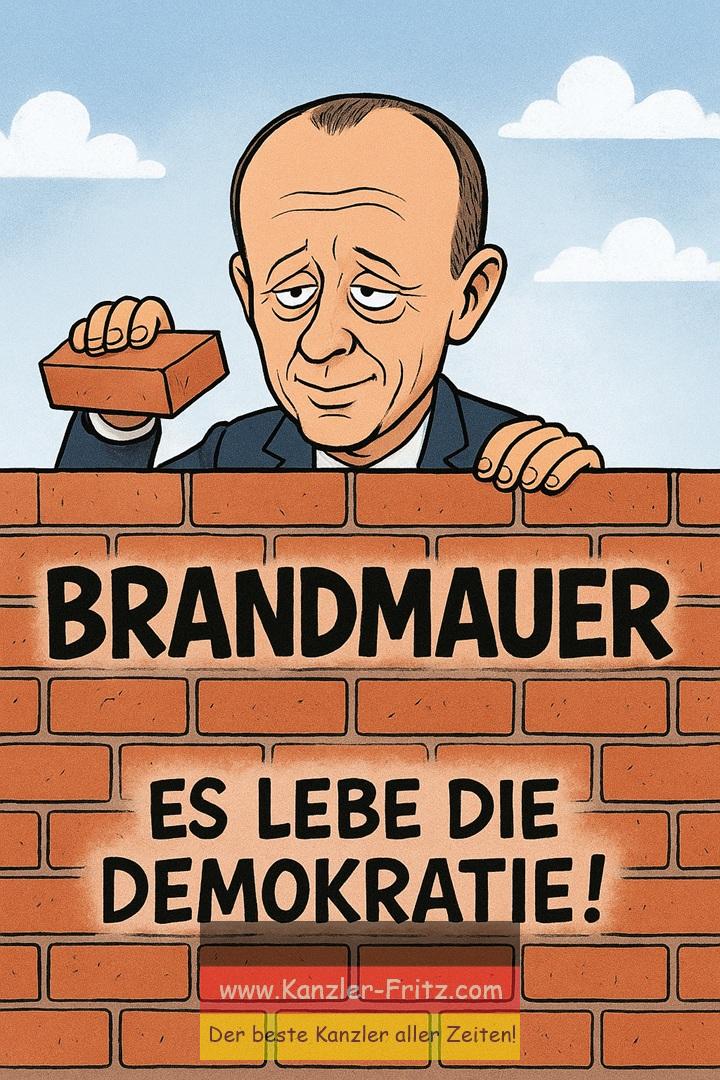 Denn die Brandmauer, liebe Freunde der bürgerlichen Vernunft, ist das neue Glaubensbekenntnis einer Partei, die sich vor lauter Distanzierung nicht mehr traut, irgendwo anzukommen. Während die SPD den Sozialstaat aufbläst, die Grünen Heizungen kontrollieren und die FDP sich in Selbstironie auflöst, steht Friedrich Merz da wie ein preußischer Denkmalswächter vor einer Ruine – und ruft: